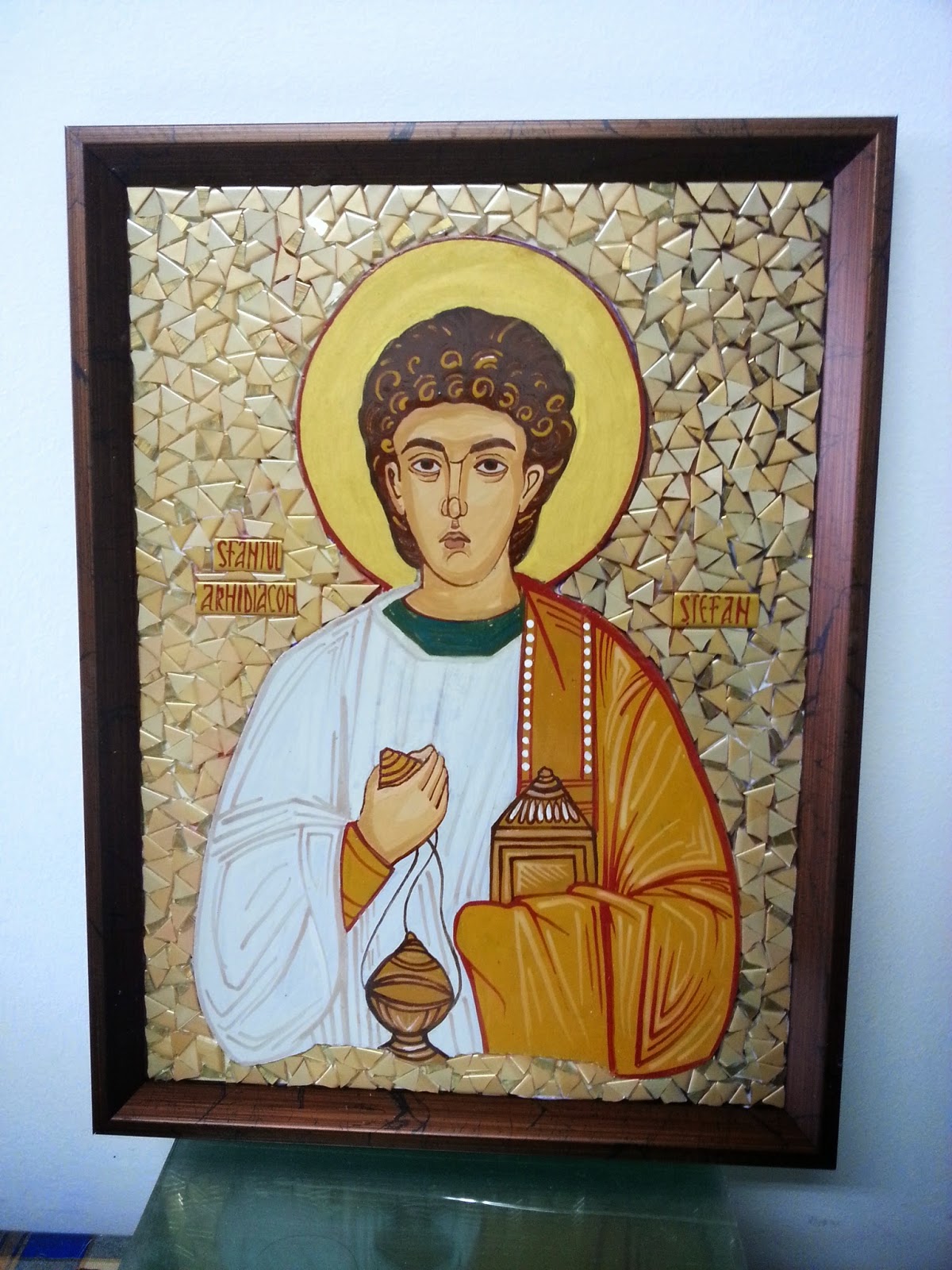 Sf Ierarh Vasile: sticla pictata si mozaic