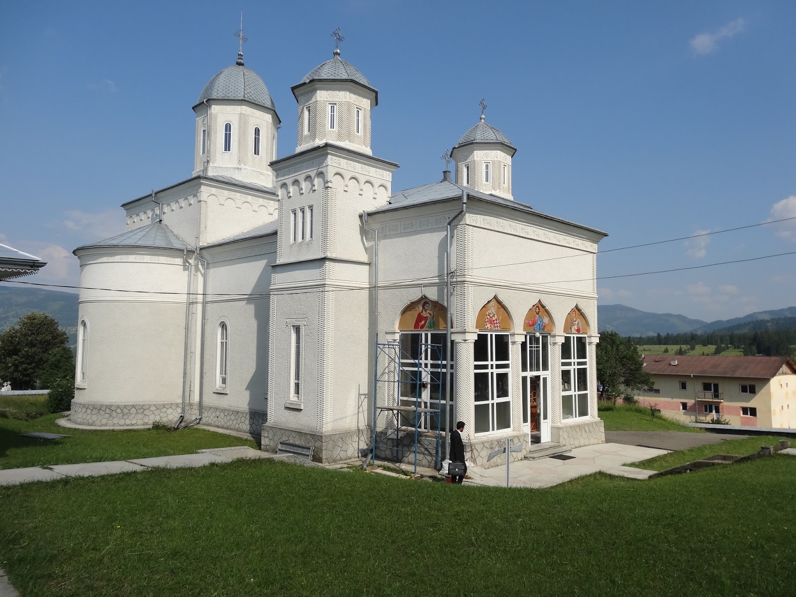 Se spune ca omul sfinteste locul. Asa am simtit si la Boistea, langa Targul Neamt, unde preotul paroh a reusit sa mobilizeze enoriasii, sa ridice pe langa vechea bisericuta de lemn si altarul de vara, impodobit cu icoanele in mozaic realizate la noi in atelier. Avem multe amintiri legate de montaj si perioada in care am lucrat aceste icoane, dar ce ne-a impresionat cel mai mult a fost convingerea preotului ca e de datoria sa sa cunoasca indeaproape si sa ajute toate familiile ortodoxe din parohie, indiferent de atasamentul lor fata de biserica.